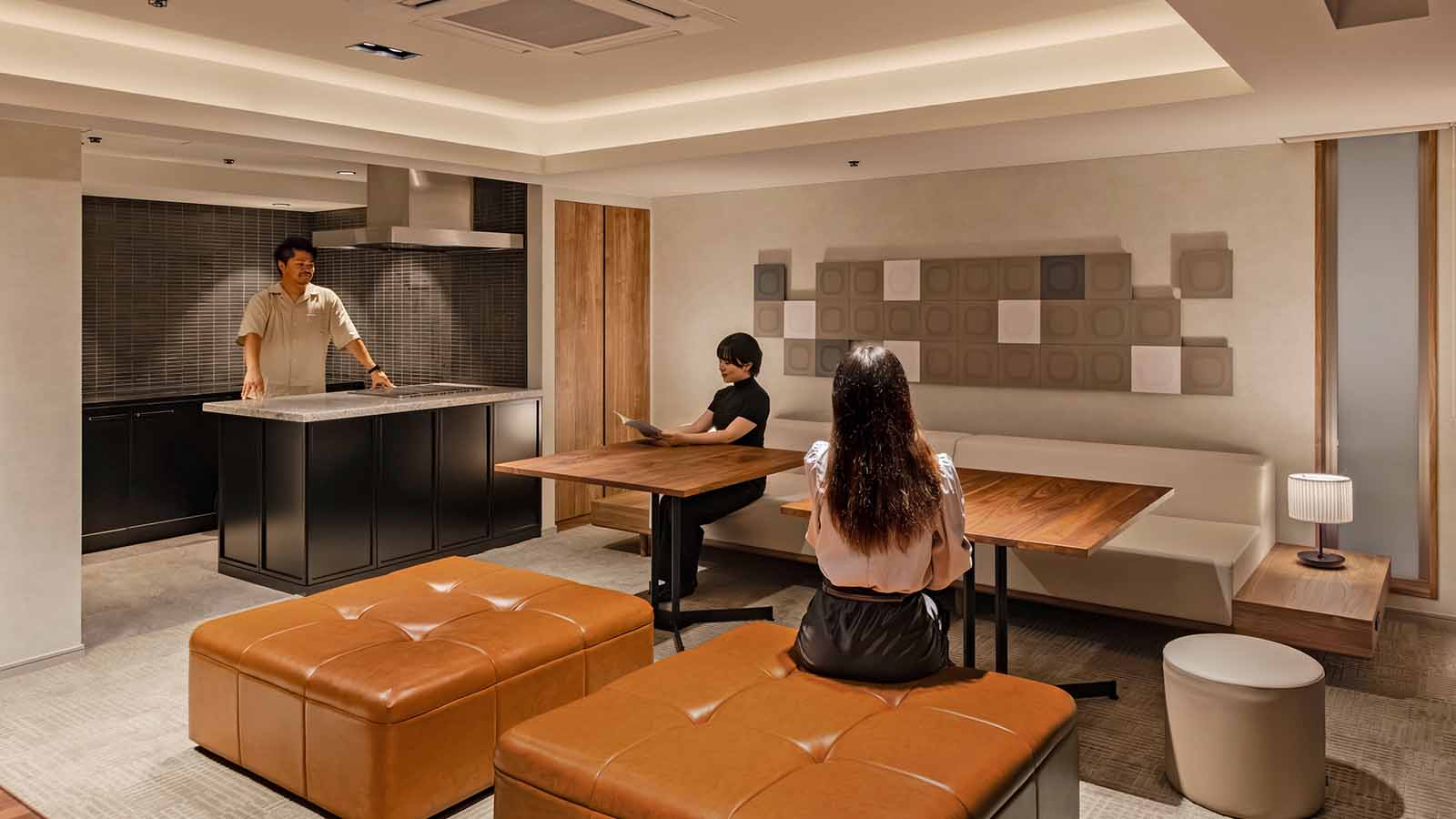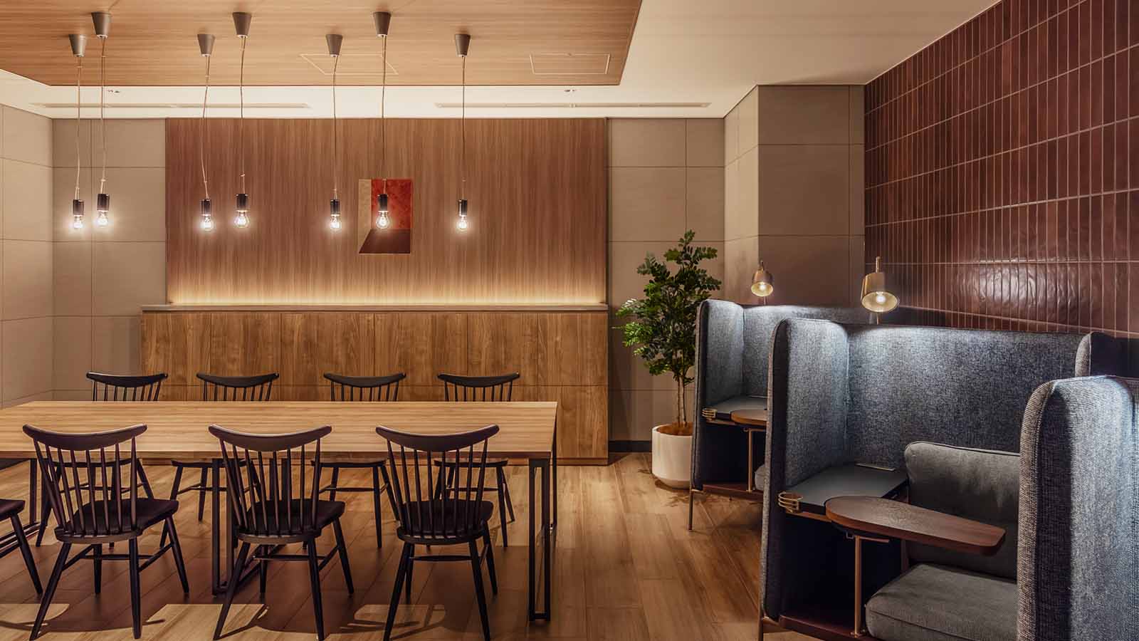 駅への優れたアクセスを備え、ビジネスの中心地に位置するマンション。ビジネスワーカーが“くつろぐ・働く”を一日で完結できるよう、集中できるワークスペースと安らげるリビングをシームレスに計画した。17階スカイラウンジは中心性のあるレイアウトと可動家具を採用し、パーティや会議など用途に応じて柔軟な空間利用を可能にしている。