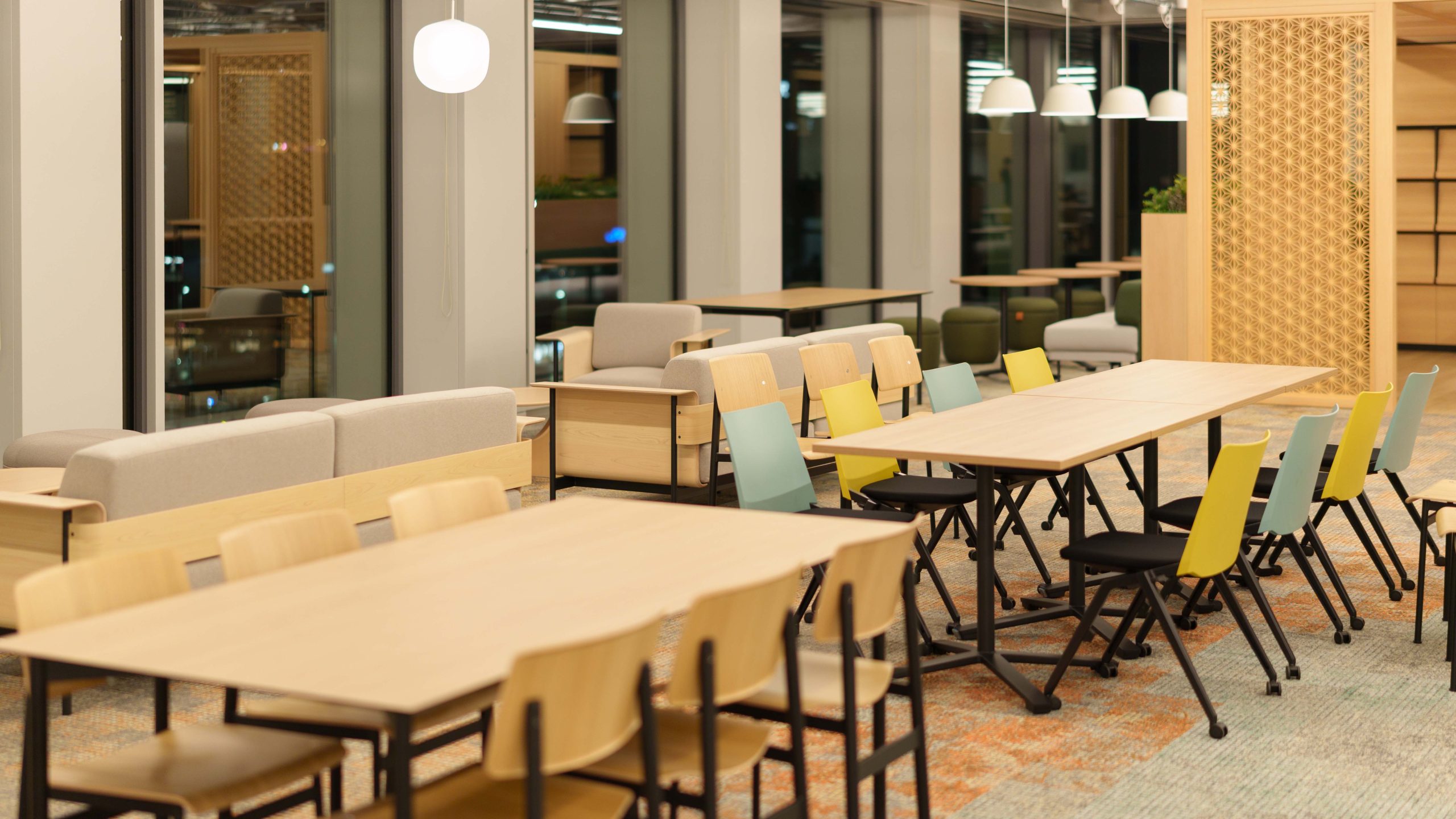 竣工月 2025年5月 所在地 石川県金沢市 担当内容 内装設計、家具納品 担当範囲 1F会議室、4F食堂・ワークスペース、6F執務エリア |