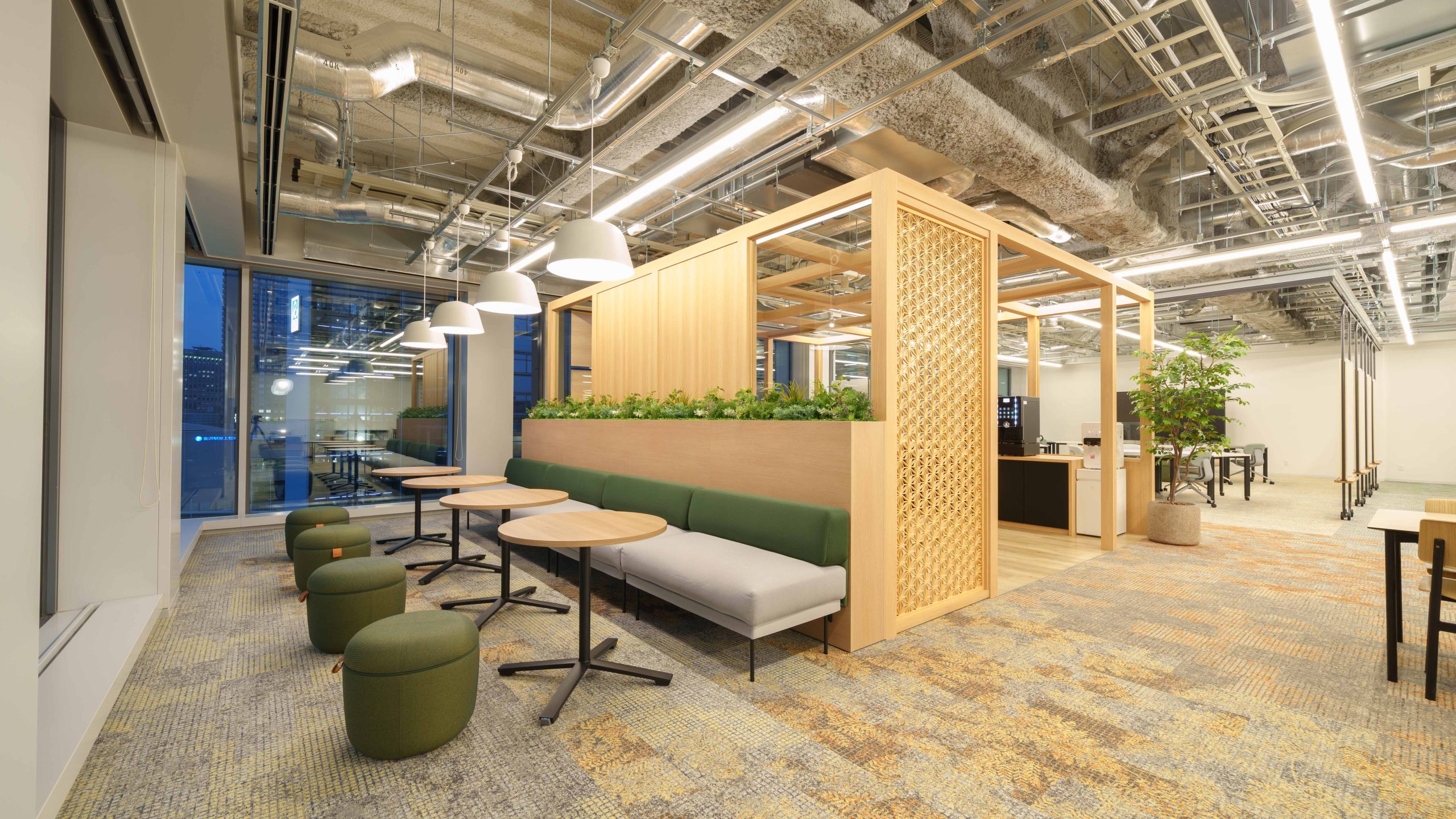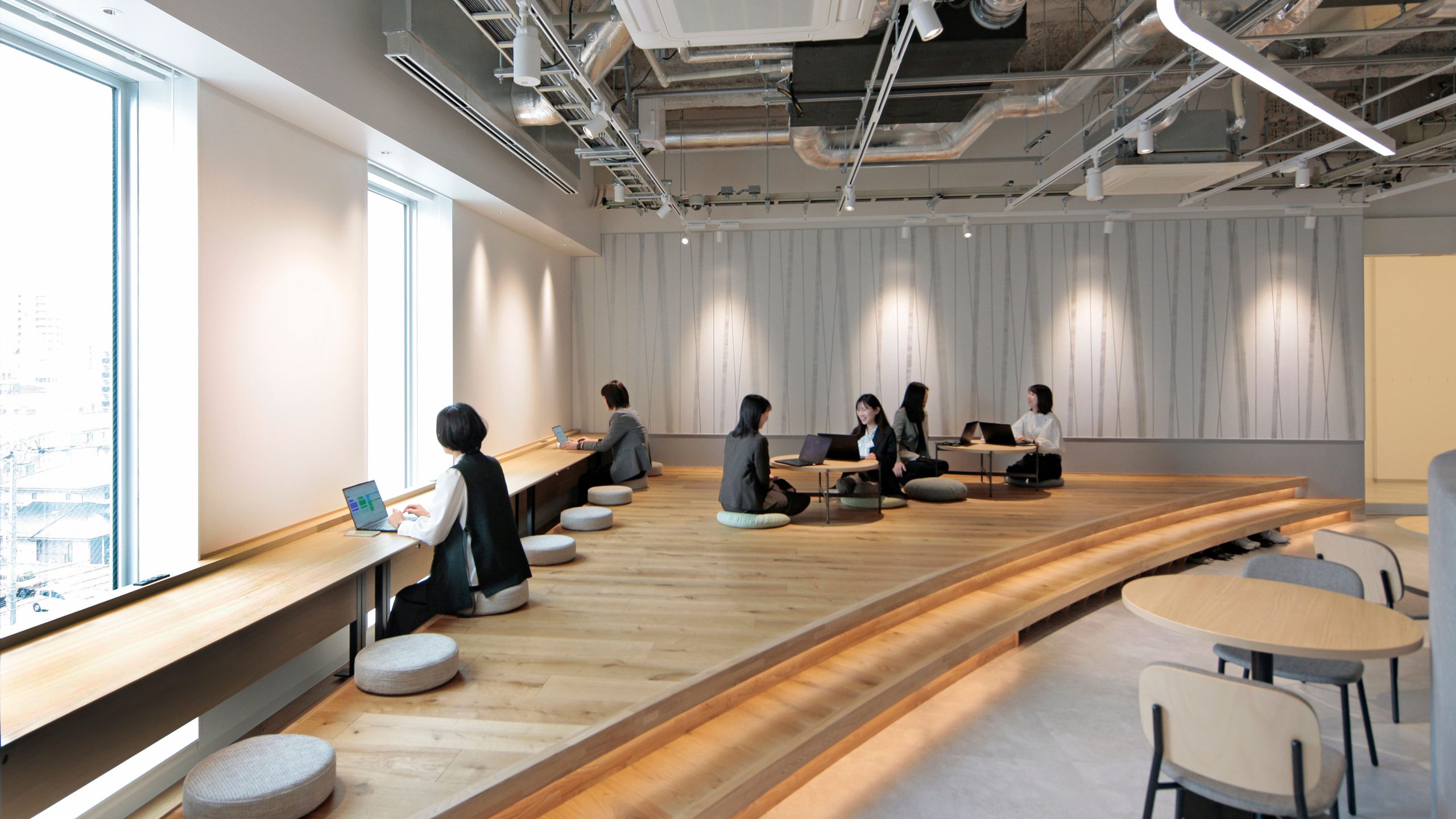 本店移転後10年を迎えた北國銀行。 多様な社員の多様な働き方を支援し、 コミュニケーションの生まれるオフィスを実現した。