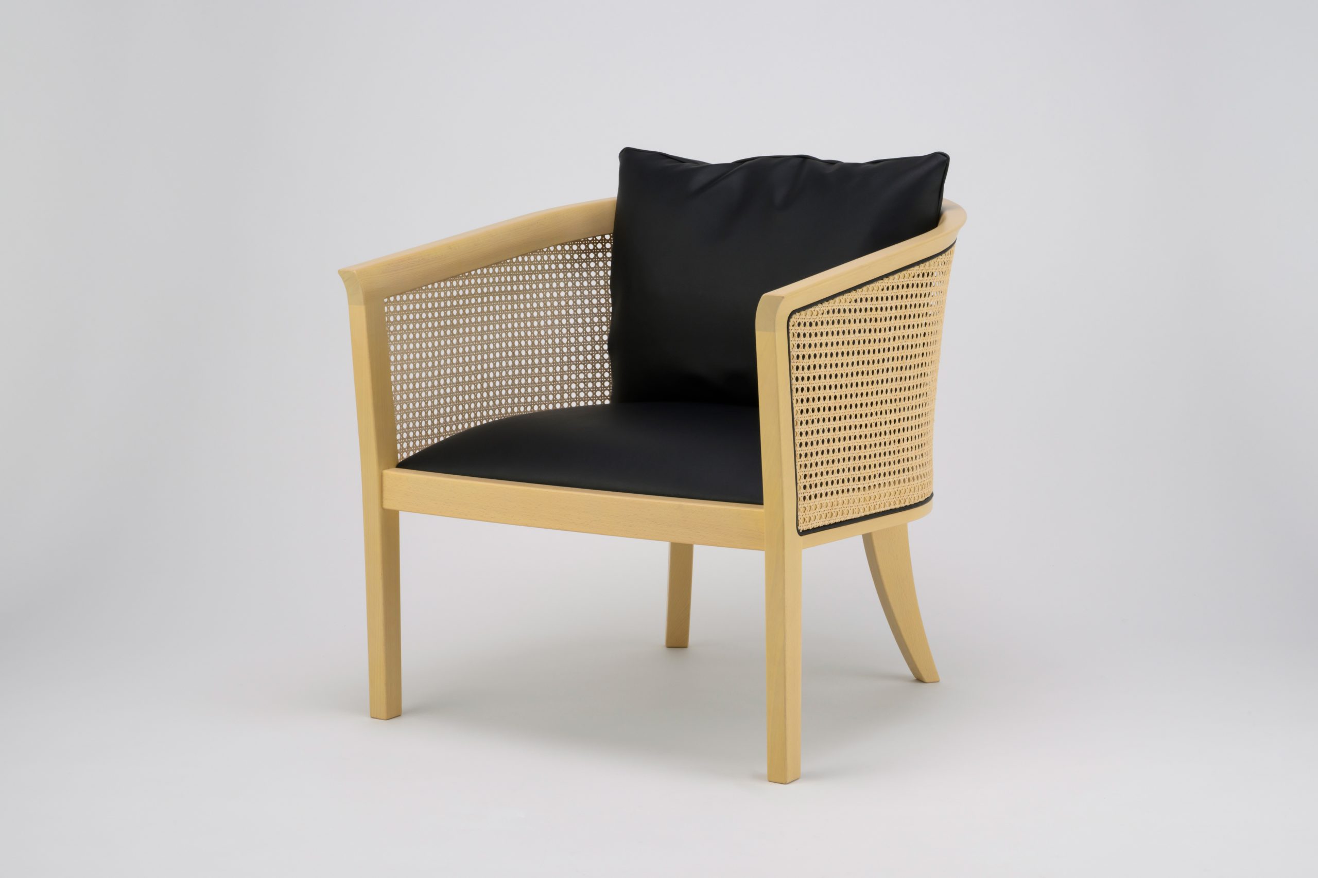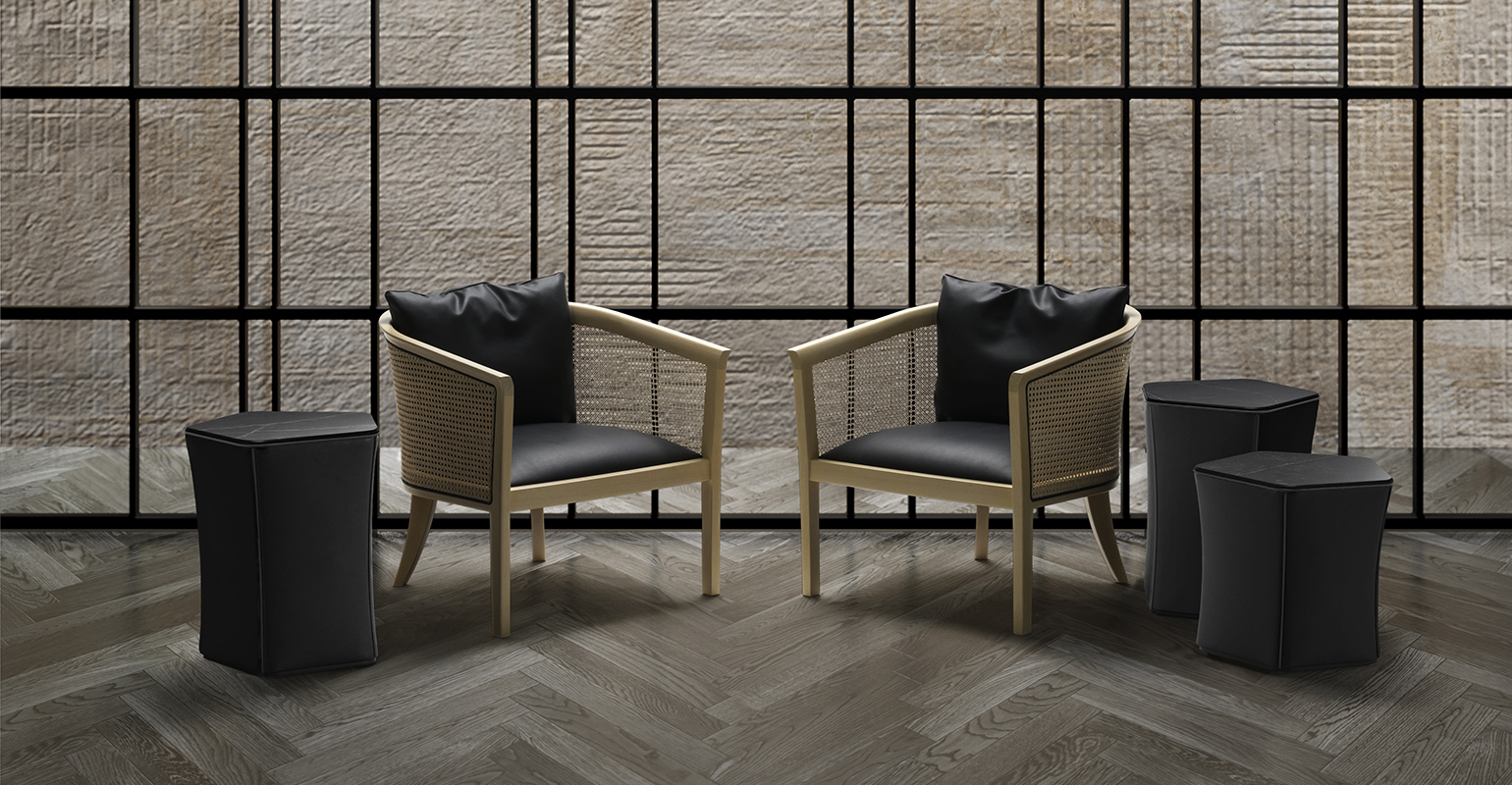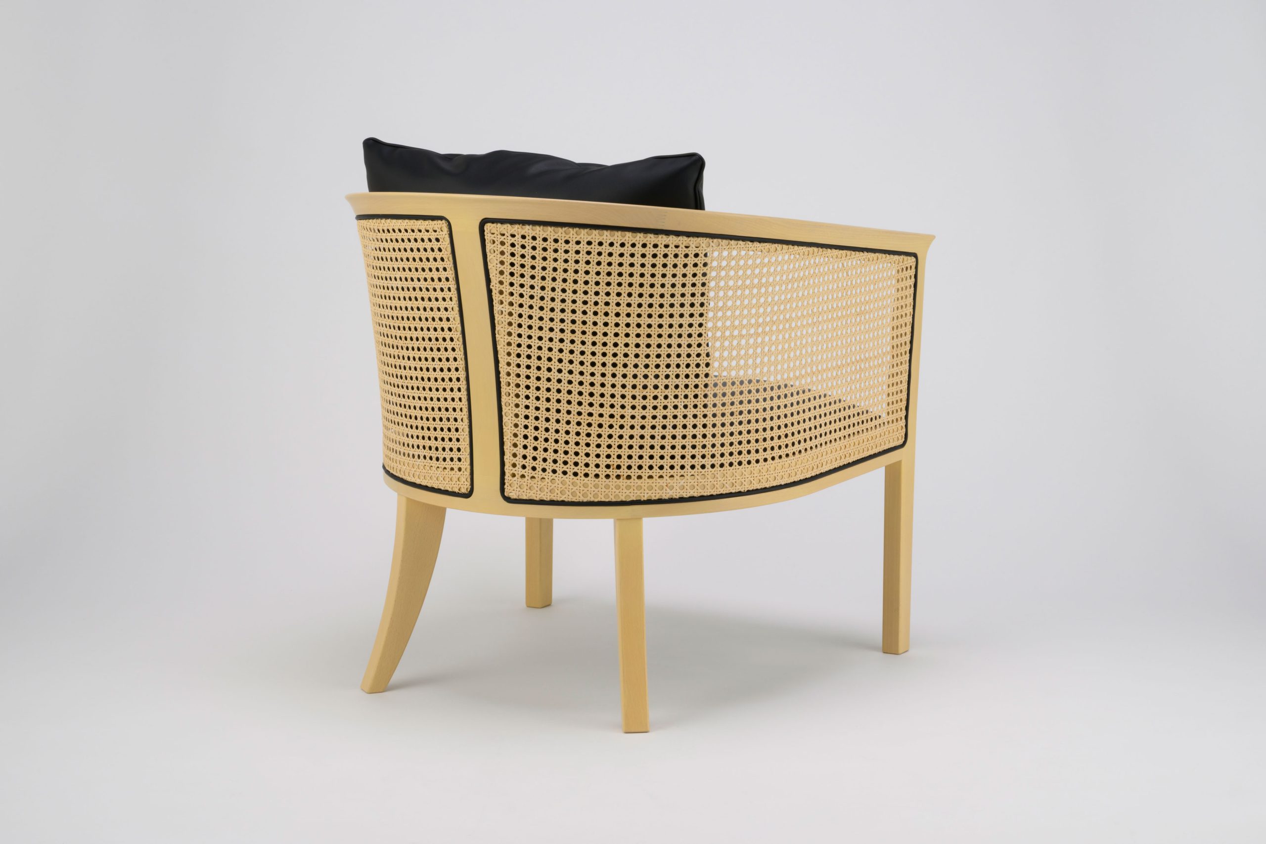 自然素材の温かみがありながら、モダンな空間にも調和する家具シリーズ。 古くから人々に親しまれているラタンの椅子の作り方に着目し、ラタンを留める機能としての丸芯を意匠へと変えた。 また通常とは反対側にラタンを張ることで網目の文様的な美しさを最大限際立たせている。