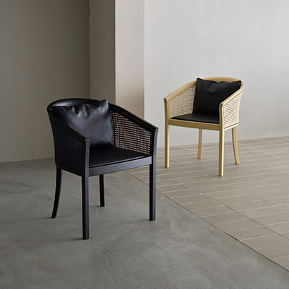 自然素材の温かみがありながら、モダンな空間にも調和する家具シリーズ。 古くから人々に親しまれているラタンの椅子の作り方に着目し、ラタンを留める機能としての丸芯を意匠へと変えた。 また通常とは反対側にラタンを張ることで網目の文様的な美しさを最大限際立たせている。
